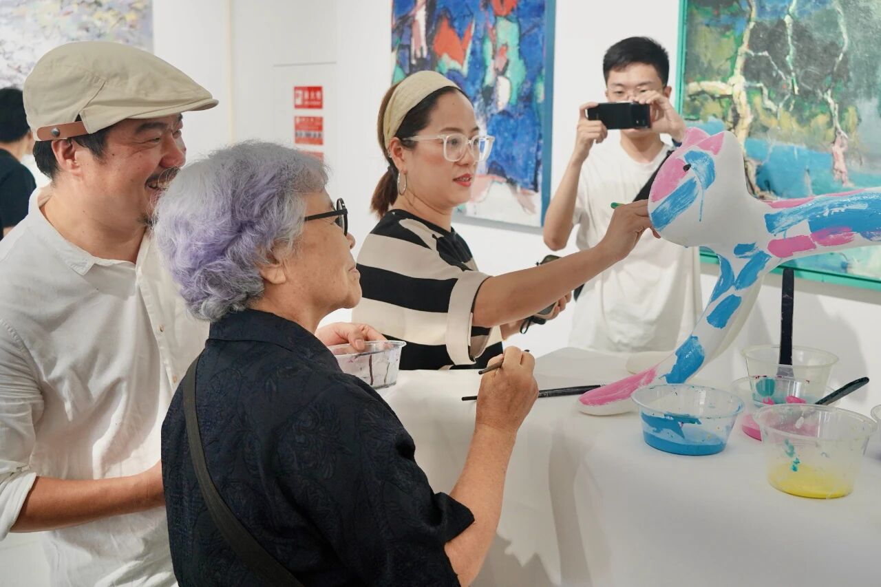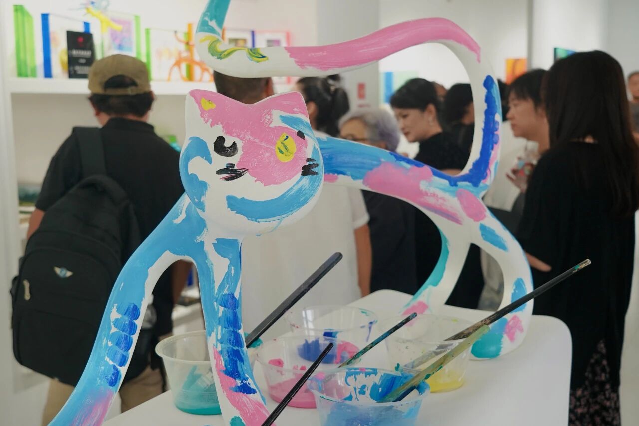 在新址首展“艺开云裳”中,潮玩艺术首次以当代雕塑的形式惊艳亮相。在萌趣可爱的形态之外,更蕴含着一份耐人寻味的空灵意境。它们不仅是艺术作品,更是“无界”理念最生动、最直接的诠释,瞬间拉近了艺术与每一位观者的距离,来宾纷纷参与共创互动,在雕塑上留下自己的画笔。